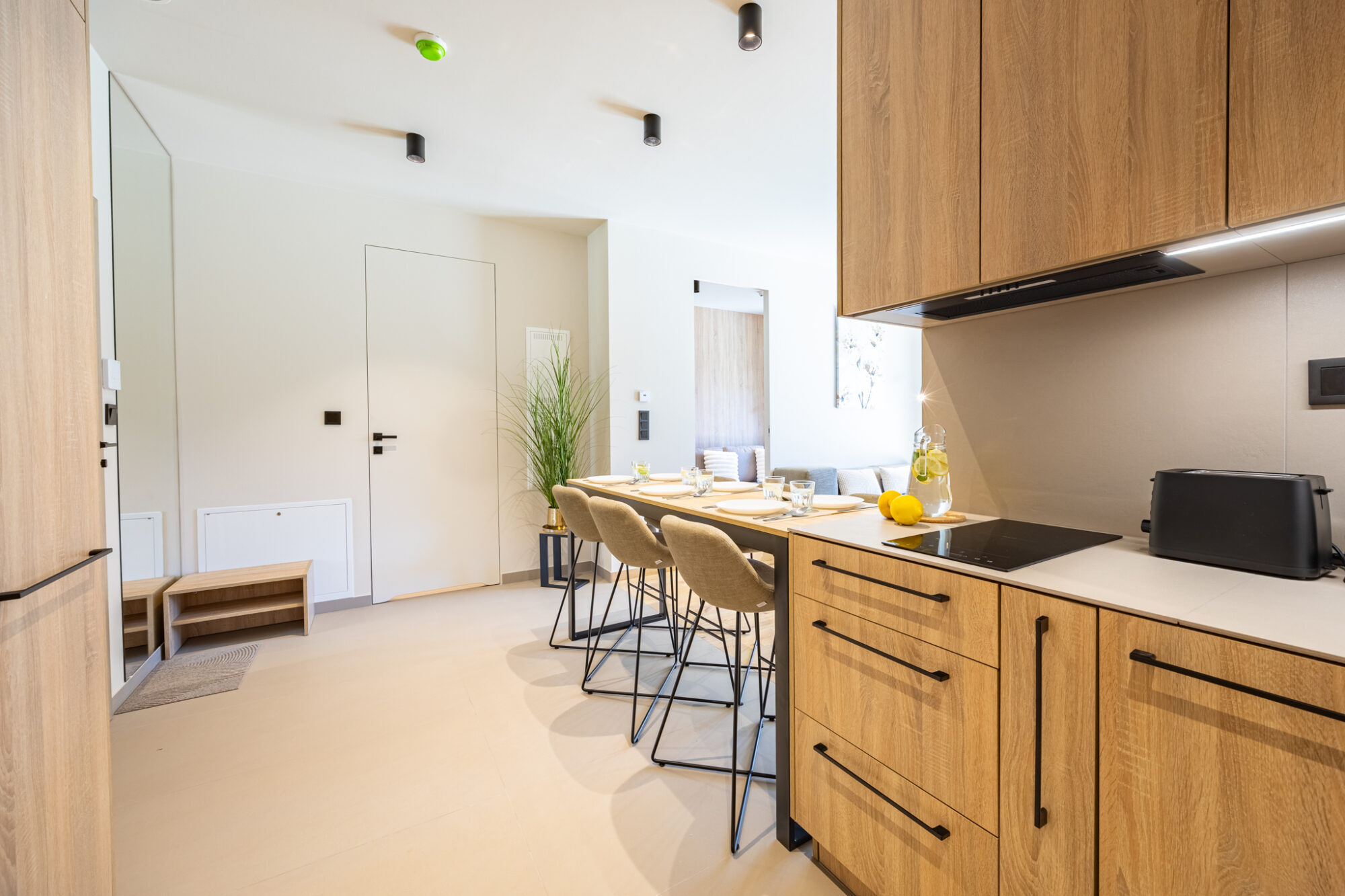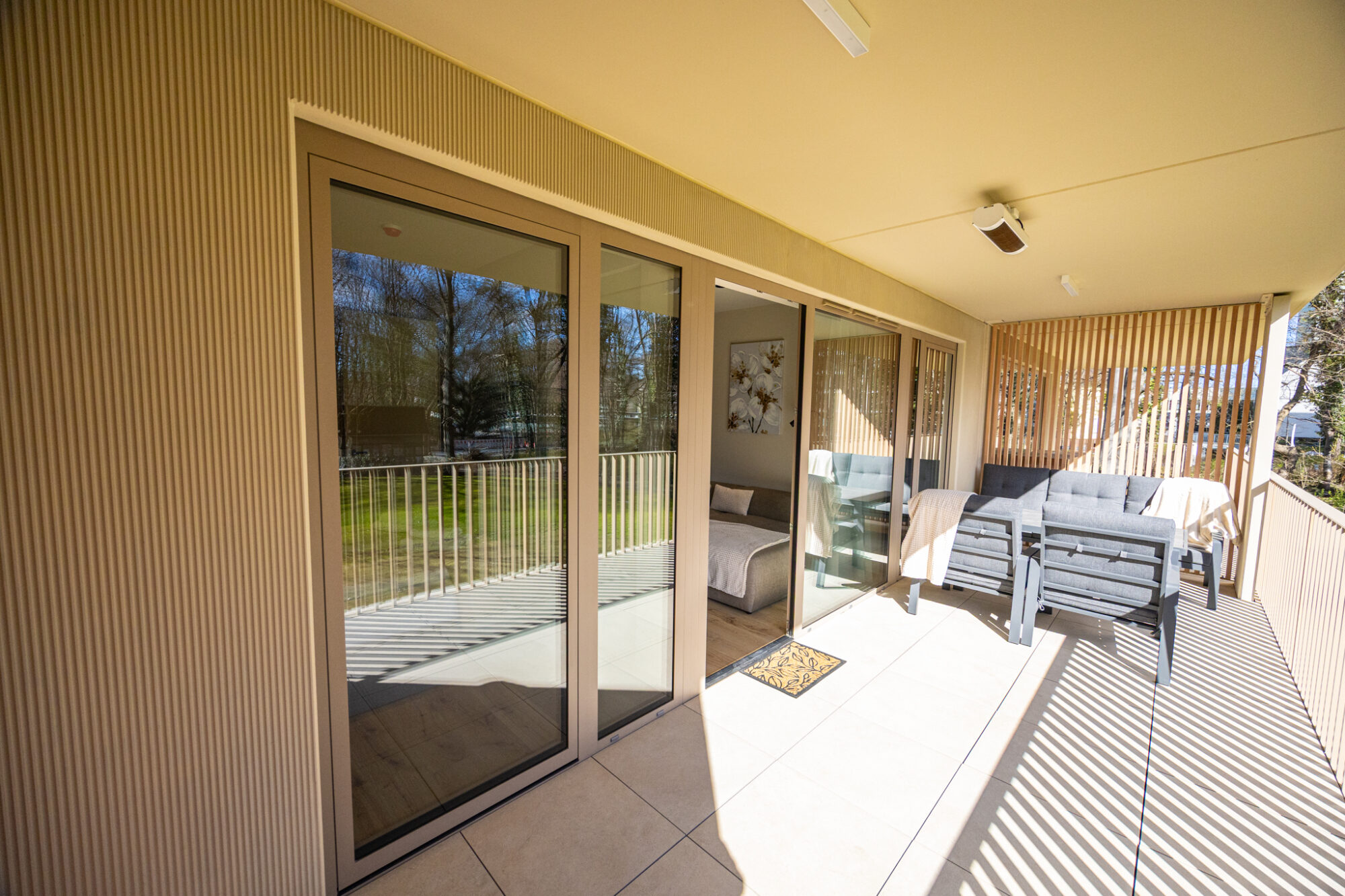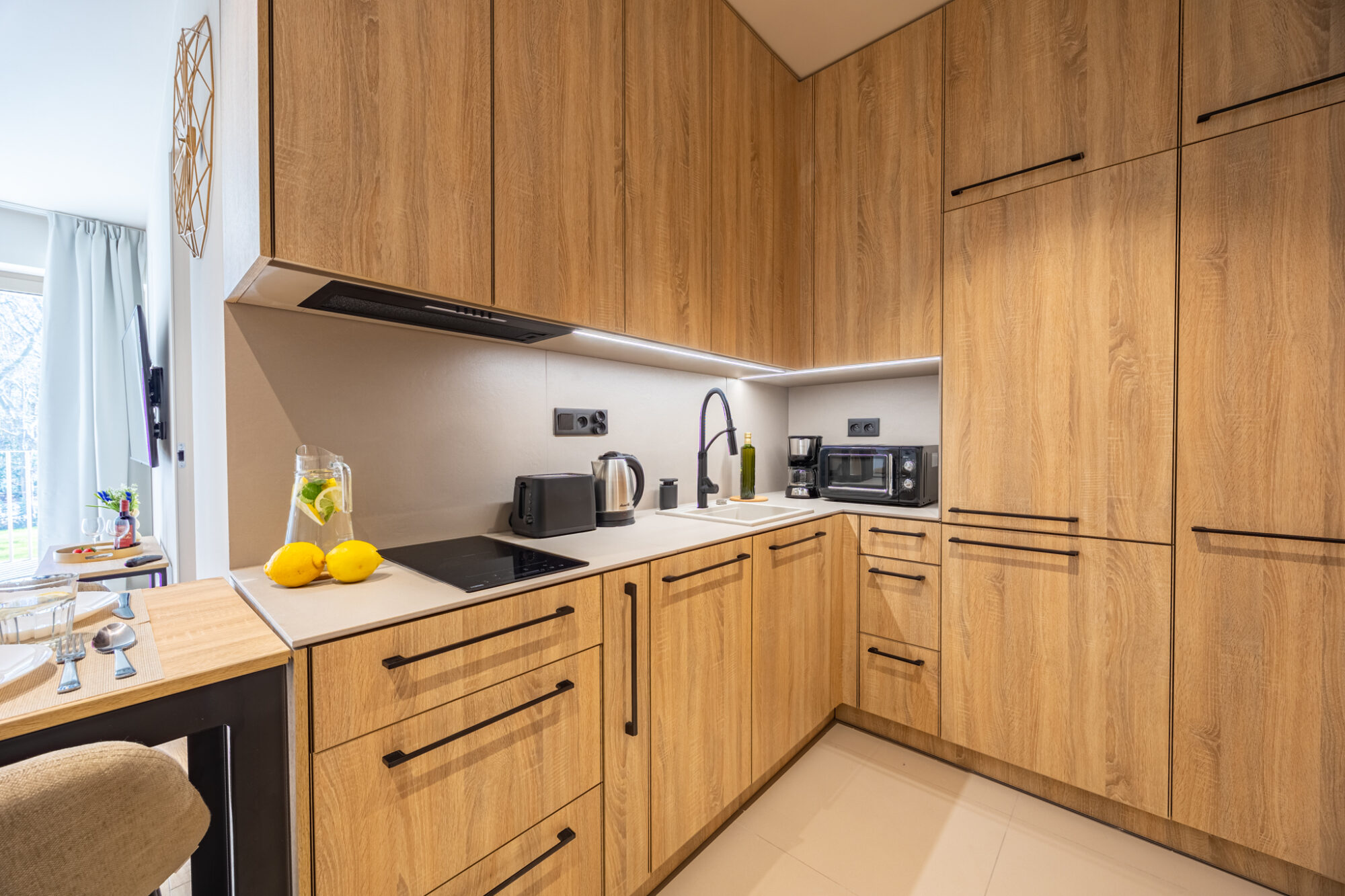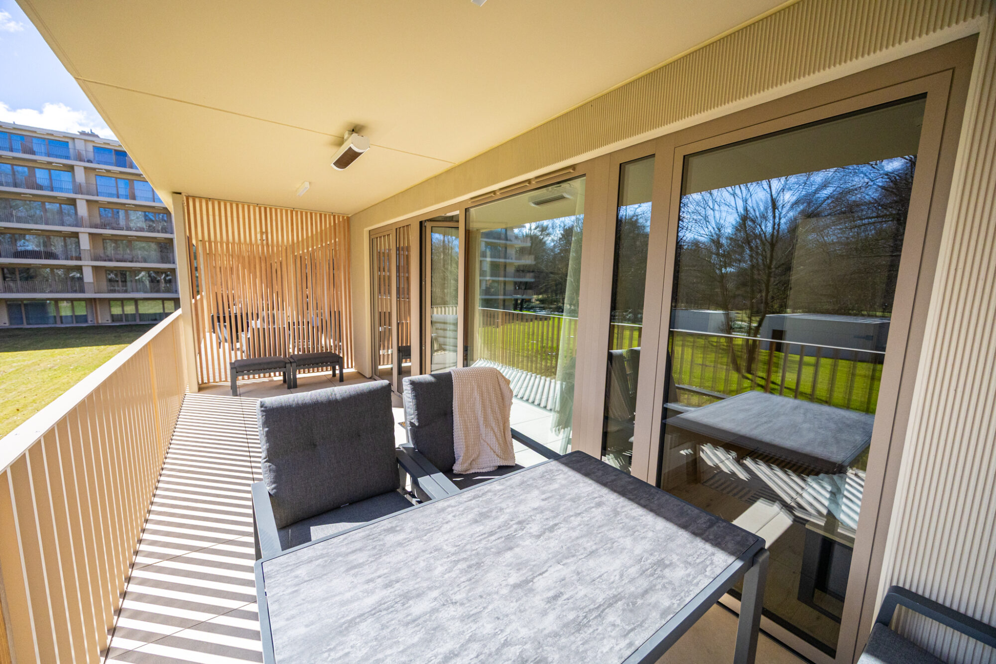 Komfortowy apartament, urządzony w nowoczesnym stylu, w pełni wyposażony zapewnia znakomite warunki do rodzinnego wypoczynku. Apartament składa się z salonu połączonego z kuchnią, która jest kompleksowo wyposażona (zmywarka do naczyń, lodówka, płyta elektryczna, czajnik elektryczny, toster, ekspres do kawy itp.), 2 sypialni (jedna z dużym łóżkiem, druga z sofą rozkładaną) i łazienki. Do apartamentu przynależy przestronny balkon.