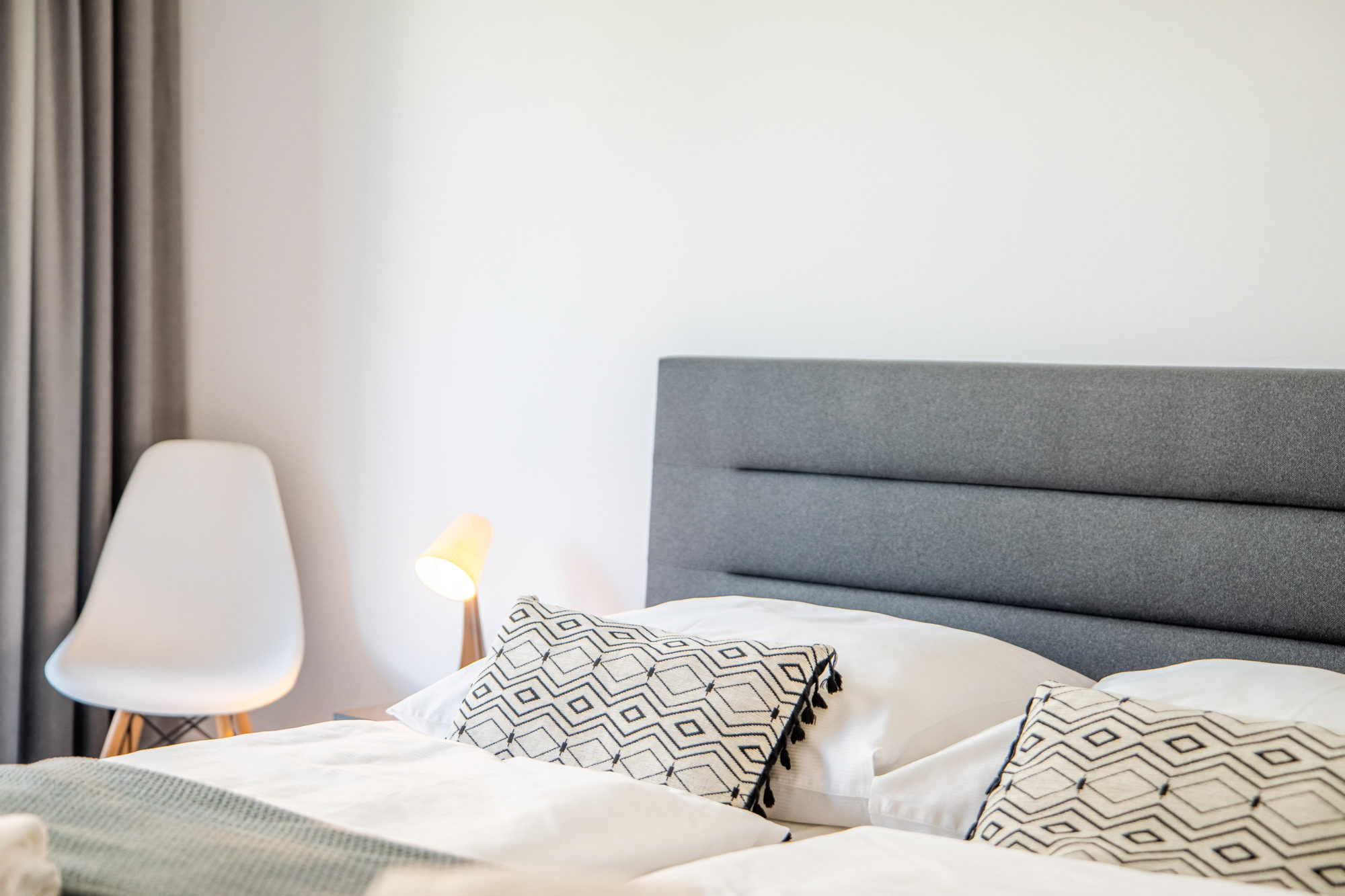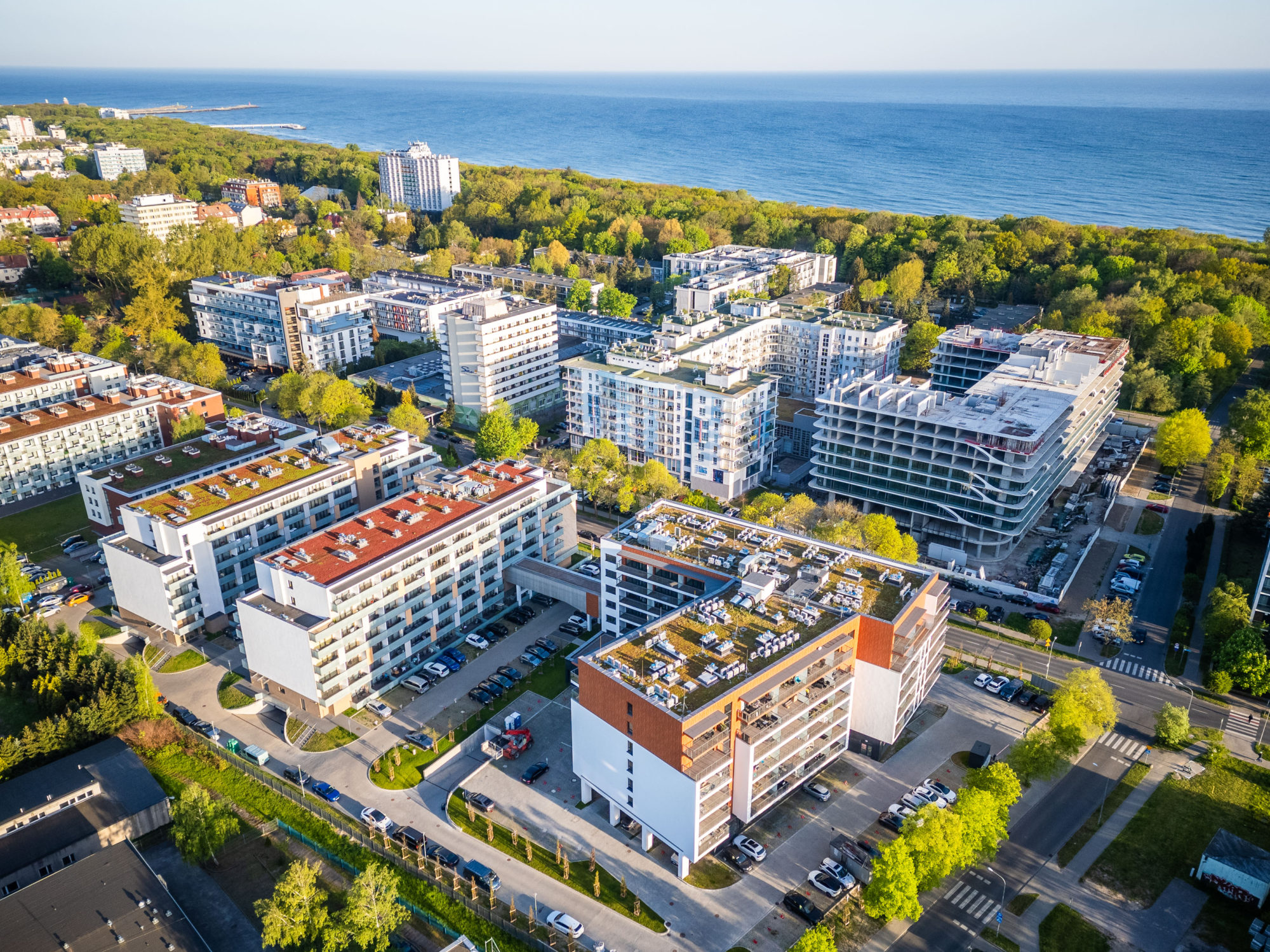 Eine luxuriöse Zweizimmerwohnung, komplett ausgestattet, die hervorragende Bedingungen für die Entspannung für 4 Erwachsene oder eine Familie mit Kindern bietet. Es befindet sich im dritten Stock eines Gebäudes in sehr verkehrsgünstiger Lage, ca. 300 m vom Strand entfernt, in der Nähe des Kurparks.