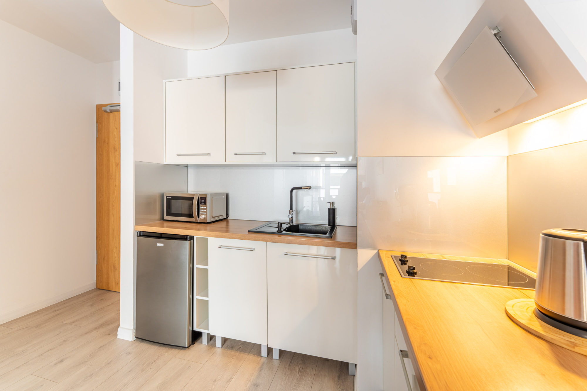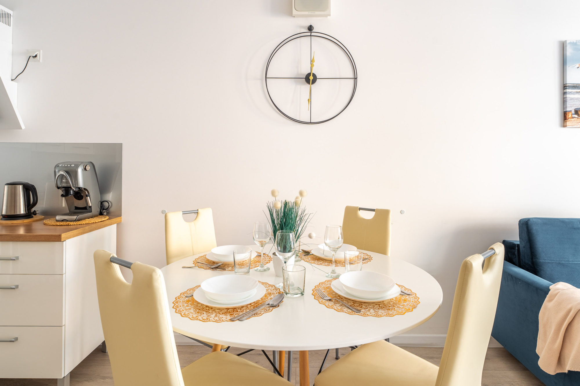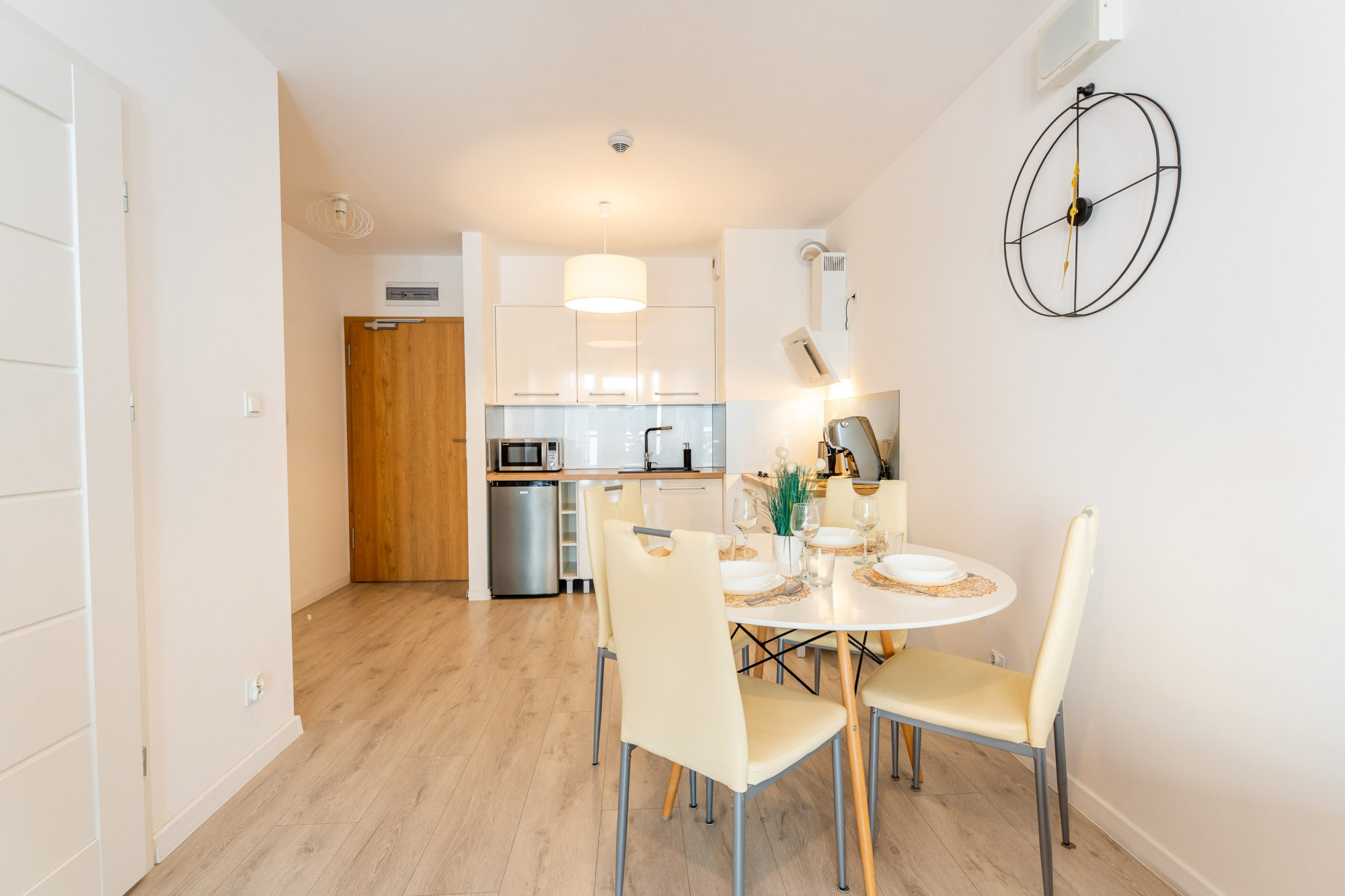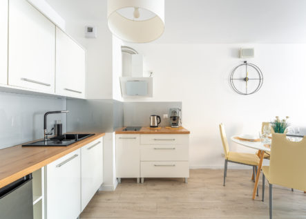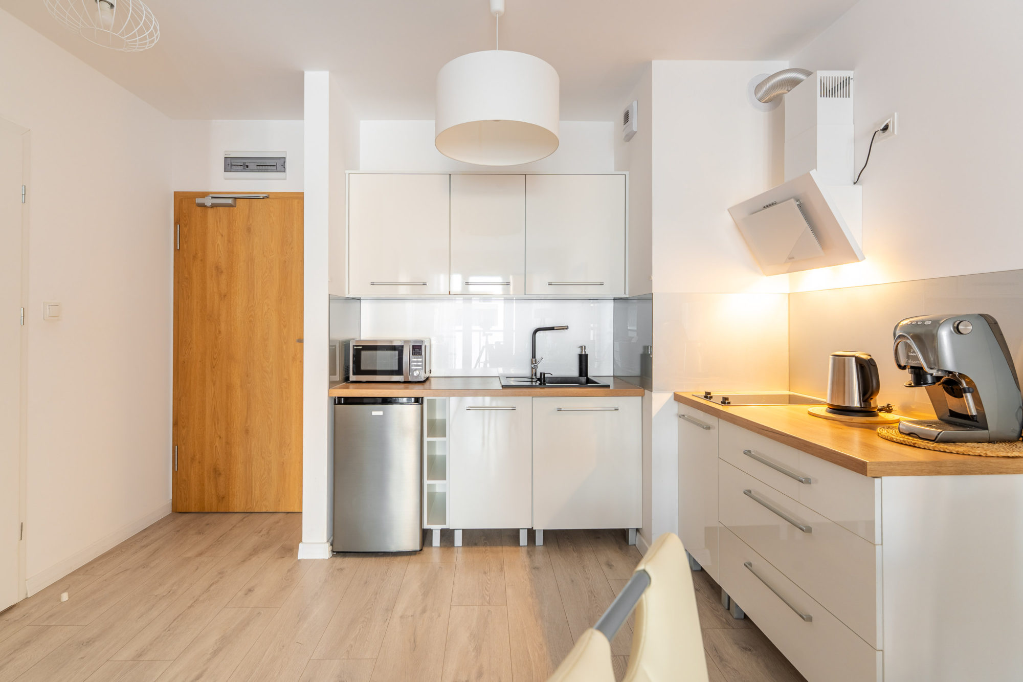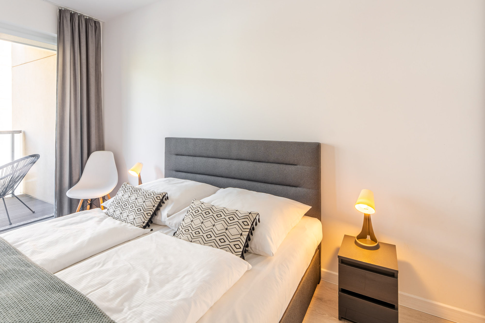 Eine voll ausgestattete Küchenzeile, ein komfortabel eingerichtetes Badezimmer mit Dusche, ein Schlafzimmer mit einem bequemen 2-Personen-Bett, ein Wohnzimmer mit einem Ecksofa und ein sonniger Balkon sind der Komfort dieser Wohnung. Den Gästen stehen Kabelfernsehen und drahtloses Internet zur Verfügung. Ein zusätzlicher Vorteil des Angebots ist ein privat Parkplatz steht vor dem Gebäude.