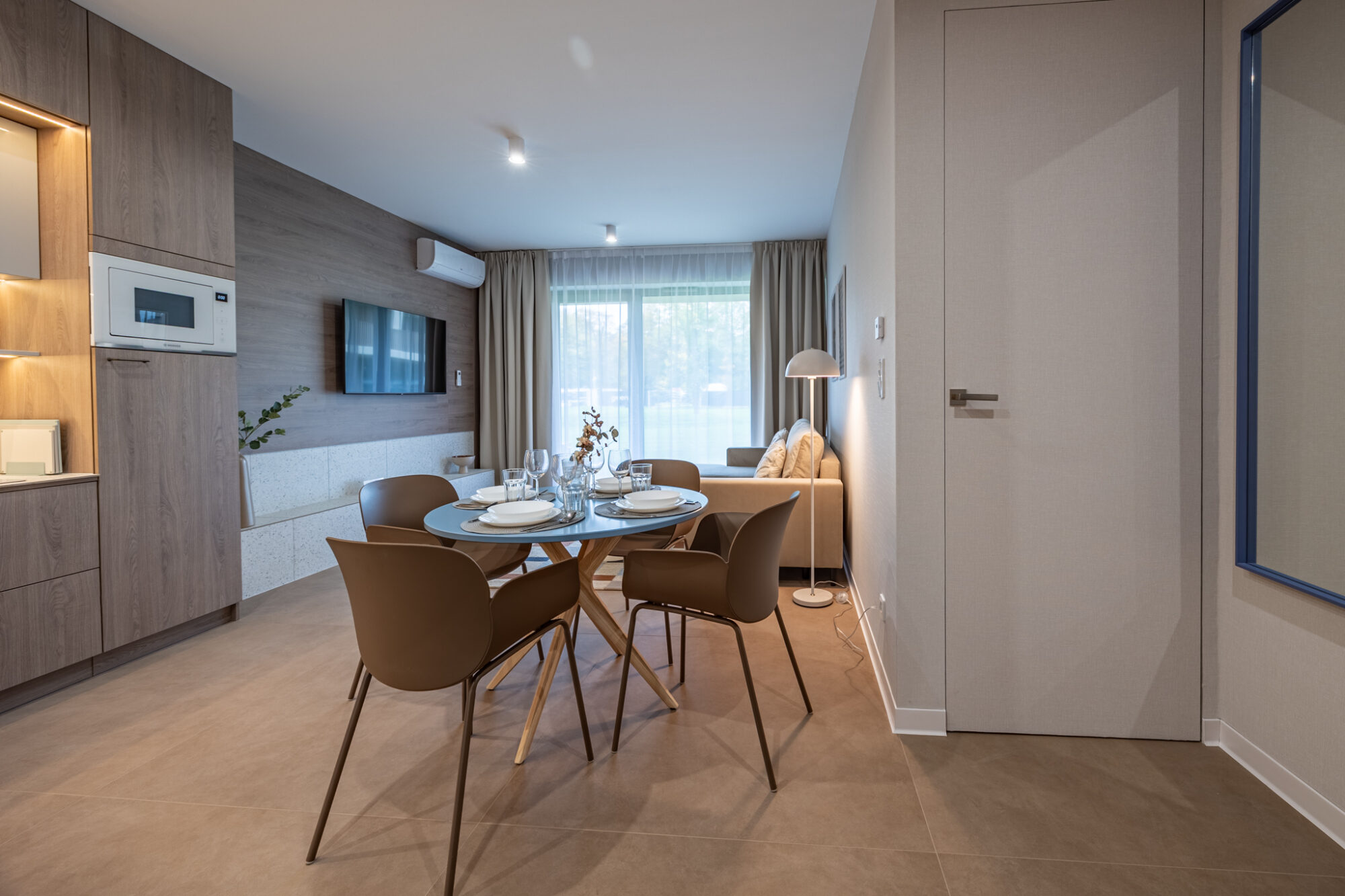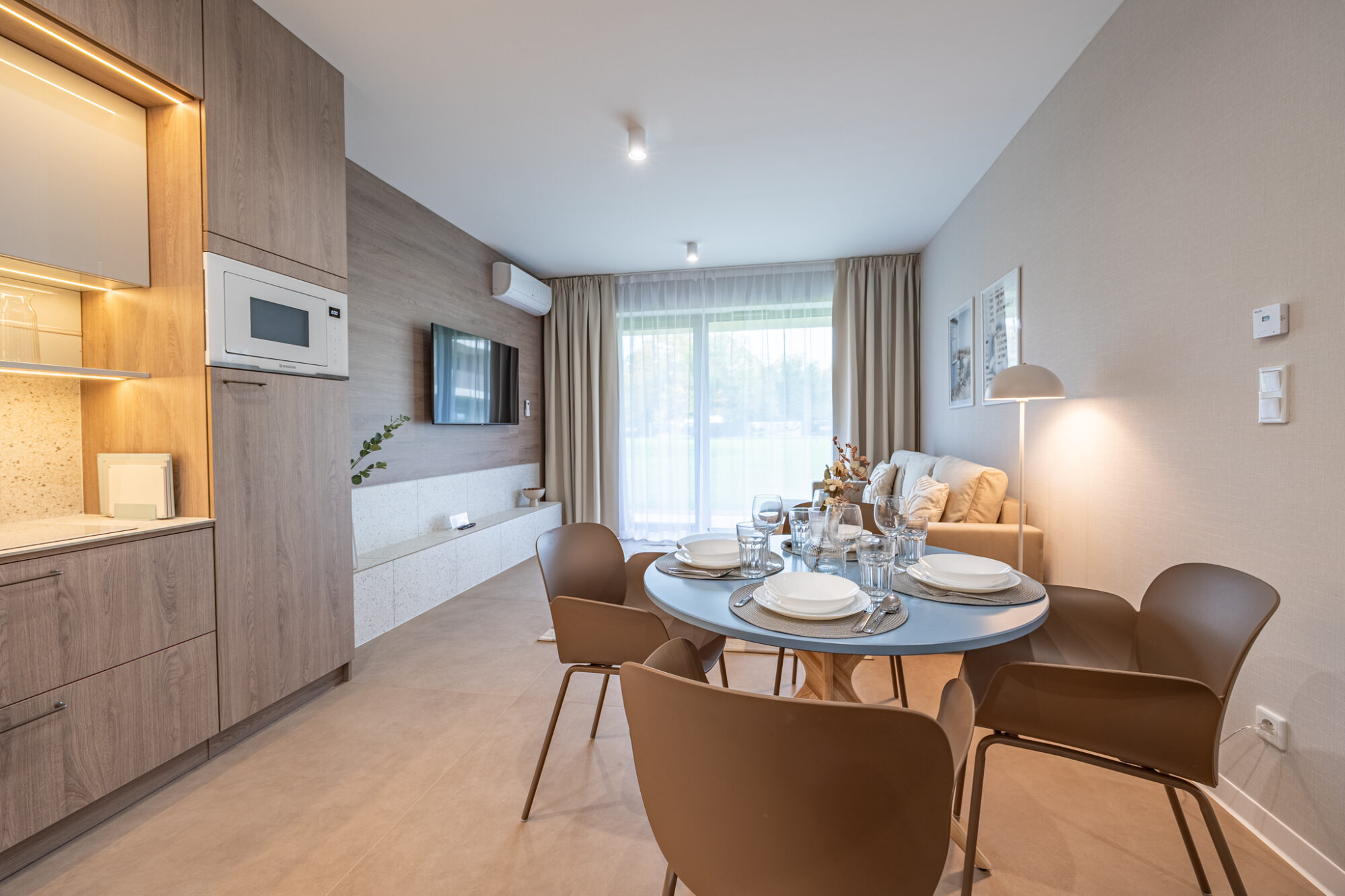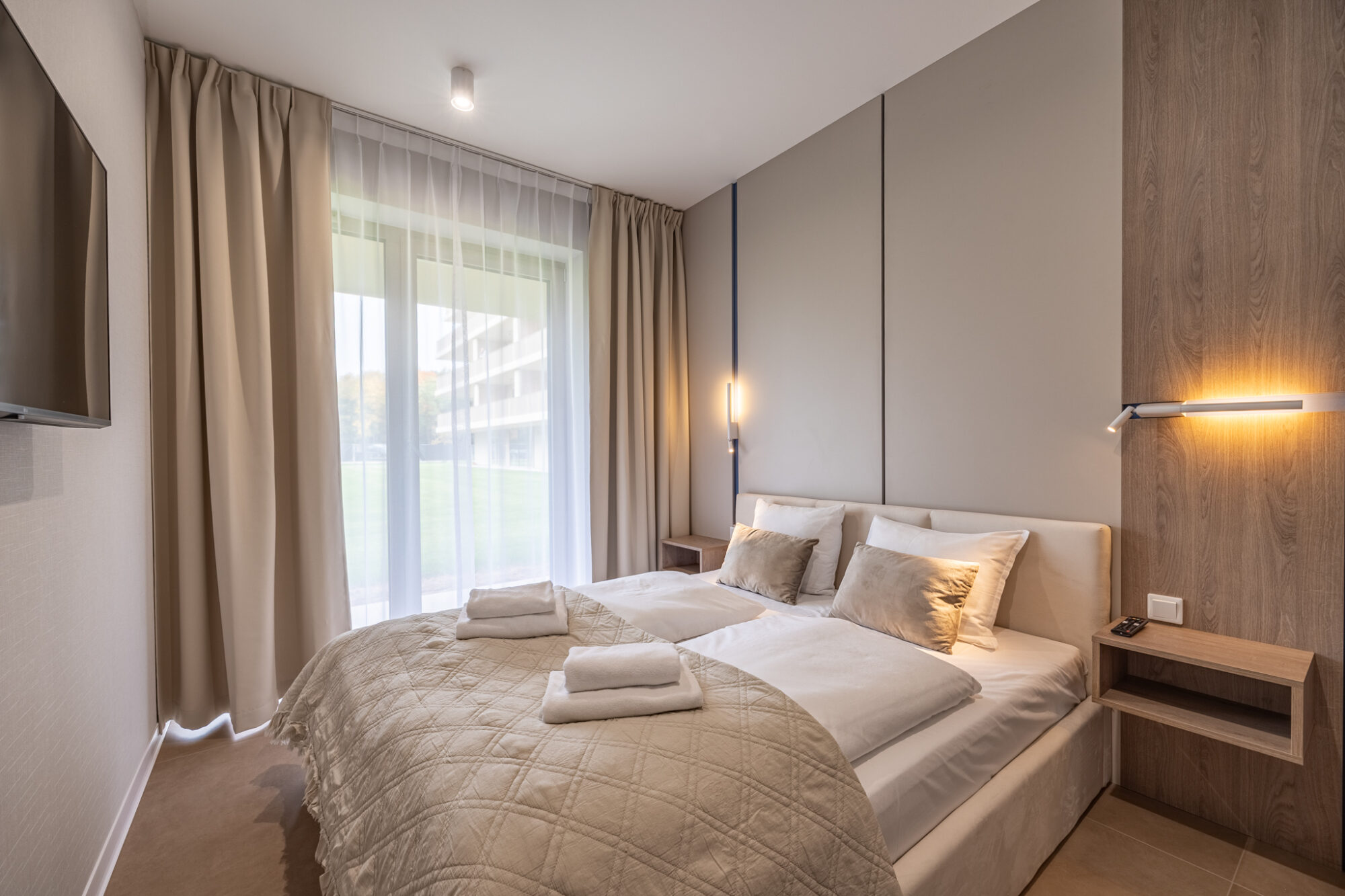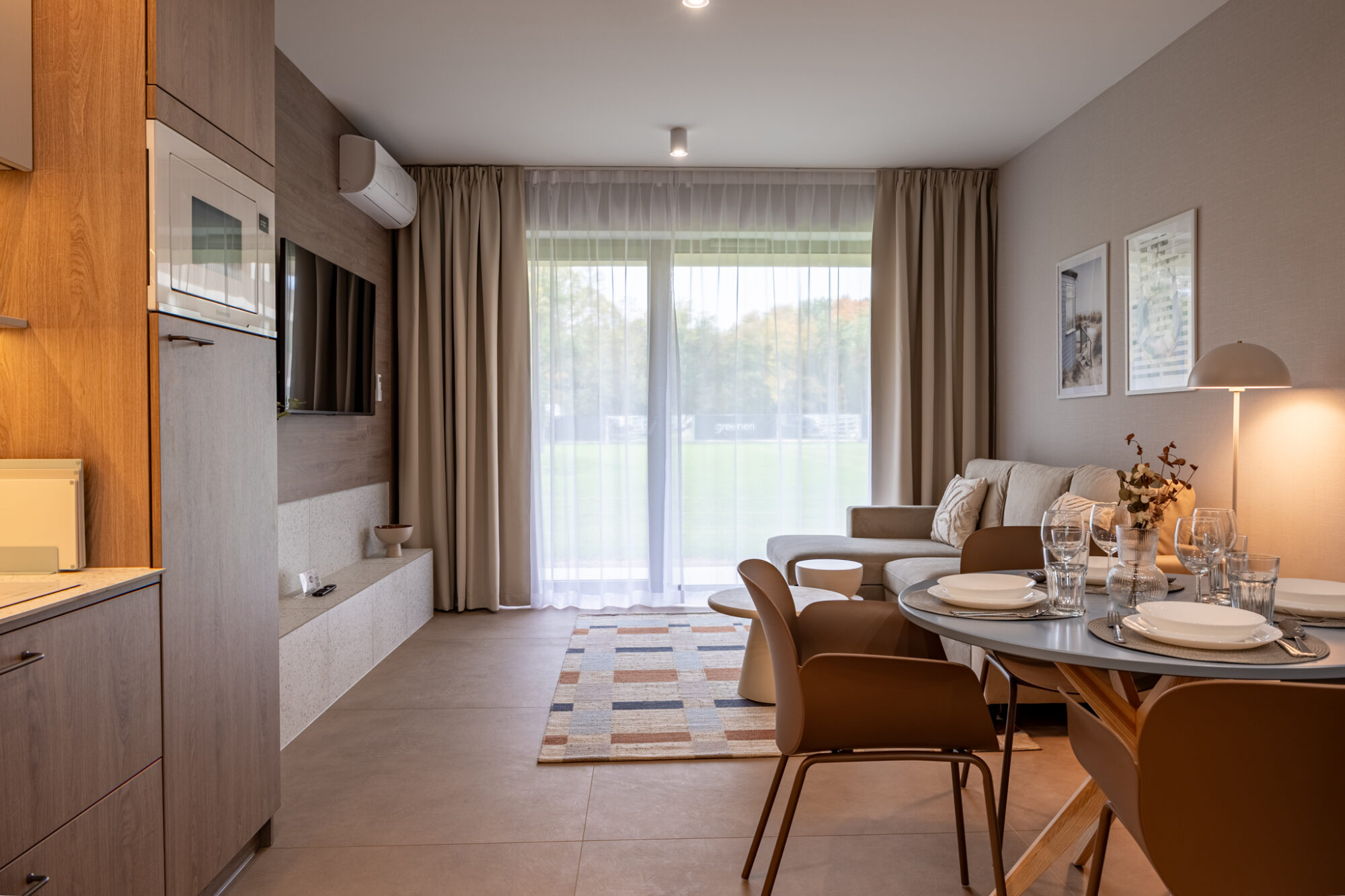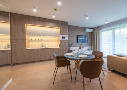Dieses gemütliche Zweizimmer-Apartment befindet sich im Erdgeschoss eines Gebäudes im neuen Greeneri Park Komplex in Świnoujście, direkt neben dem Zdrojowy Park.